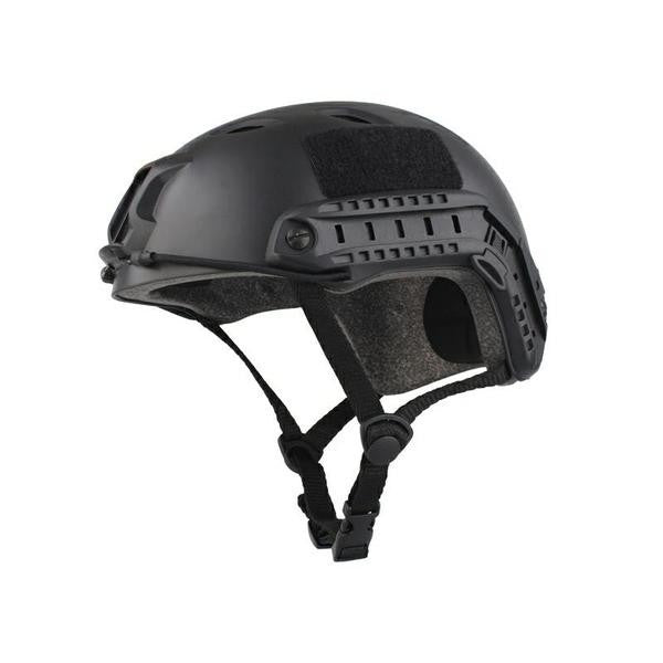 Căștile Emersongear FAST BJ Tip EM8810B în culoarea neagră sunt echipamente tactice de înaltă calitate, concepute pentru a oferi protecție și confort în timpul jocurilor de airsoft și activităților tactice. Acestea sunt echipate cu șine laterale și velcro pentru montarea diverselor accesorii, precum lanterne, camere video sau dispozitive NVG.