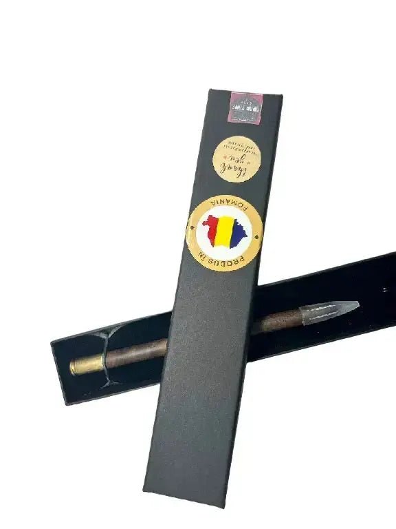 Corpul său este realizat din plastic dur, cu un finisaj ce imita lemnul autentic, oferind o senzație plăcută la atingere și o greutate echilibrată pentru o scriere fluidă. Detaliul de impact? Tubul de cartuș 9x19 integrat la capăt, un omagiu adus preciziei și stilului Drop Zone.