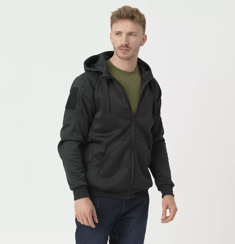Hanorac Urban Tactical de culoare neagra, fabricat de Helikon-Tex®. URBAN TACTICAL HOODIE® este un hanorac ușor cu glugă. Croiala și țesătura elastică fac ca acest hanorac să fie perfect pentru orice operațiuni urbane.