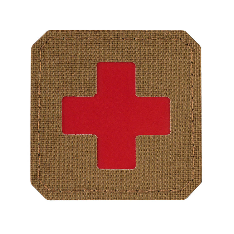 Fabricat din Cordura® 500D, un material rezistent la uzură și intemperii, patch-ul are un design laser cut cu cruce roșie vizibilă, aplicată pe fundal Coyote. Se atașează ușor pe orice suprafață prevăzută cu Velcro, fiind ideal pentru pouches, genți tactice, veste sau rucsacuri.