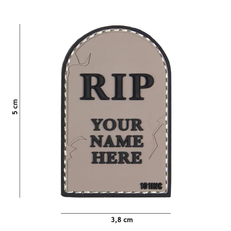 Îmbogățește-ți echipamentul și exprimă-ți stilul cu patch-ul RIP din PVC cu prindere pe Velcro! Acest patch de înaltă calitate este perfect pentru a adăuga un element personalizat la orice tip de îmbrăcăminte sau echipament cu suprafață Velcro. Patch-ul imită o placă de mormânt și măsoară 5x3.8 cm.