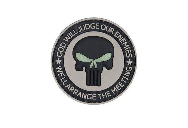 Patch velcro Punisher - God will judge our enemies. Model 3D din PVC, cu diametrul de 50mm.