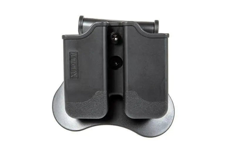 Pouch Dublu pentru incarcatoare de pistol fabricat de AMOMAX. Prindere tip paddle, pouch-urile se regleaza in functie de dimensiunea incarcatoarelor.