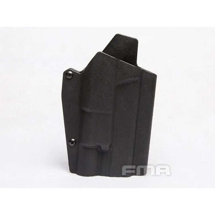 - Design Specializat: Acest toc este creat special pentru a se potrivi cu modelele de pistol GLOCK 17 și G19, precum și cu lanterna X300 Surefire, asigurând o fixare sigură și o extracție rapidă.