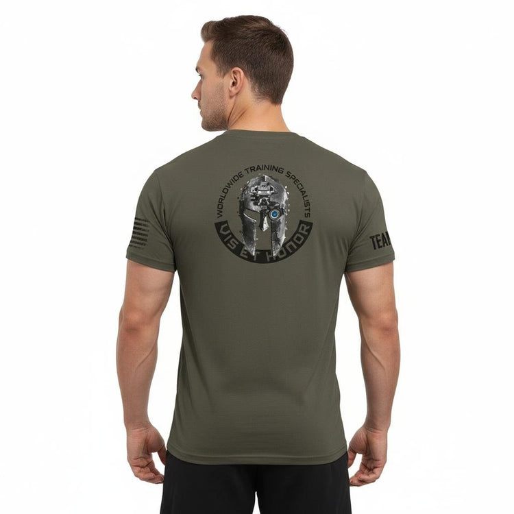 Pe piept și spate, tricoul prezintă un print de impact cu simbolul „Vis Et Honor”, care reflectă valorile de forță și onoare, alături de elemente grafice tactice asociate cu Instructor Zero. Mâneca dreaptă este imprimată cu steagul SUA, iar pe cea stângă se regăsește brandingul TEAM ZERO, detalii care transformă tricoul într-o piesă cu adevărat exclusivistă.